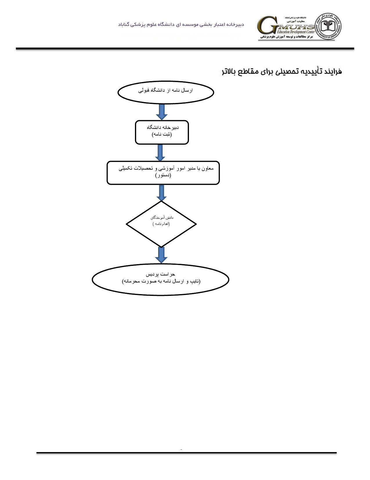 فرایند تاییدیه تحصیلی برای مقاطع بالاتر