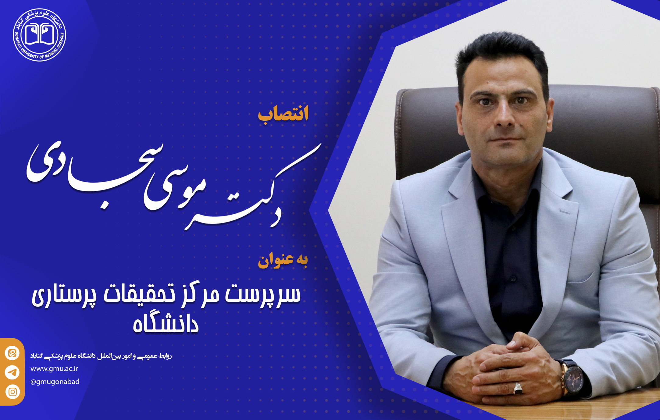 طی حکمی از سوی دکتر عبدالجواد خواجوی سرپرست دانشگاه علوم پزشکی گناباد، دکتر موسی سجادی به عنوان سرپرست مركز تحقيقات پرستاري این دانشگاه منصوب شد.